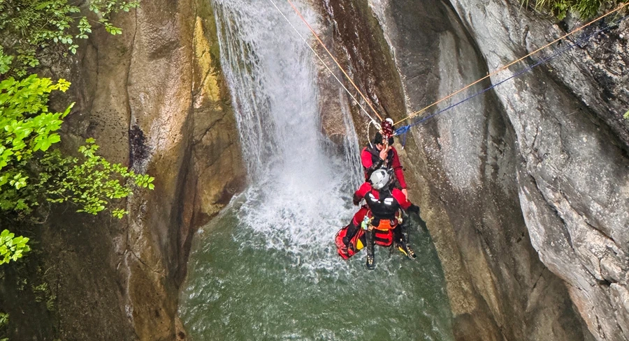 Filmaufnahmen der Canyon-Rettungsübung der Region Hochland Ost und Hochland West