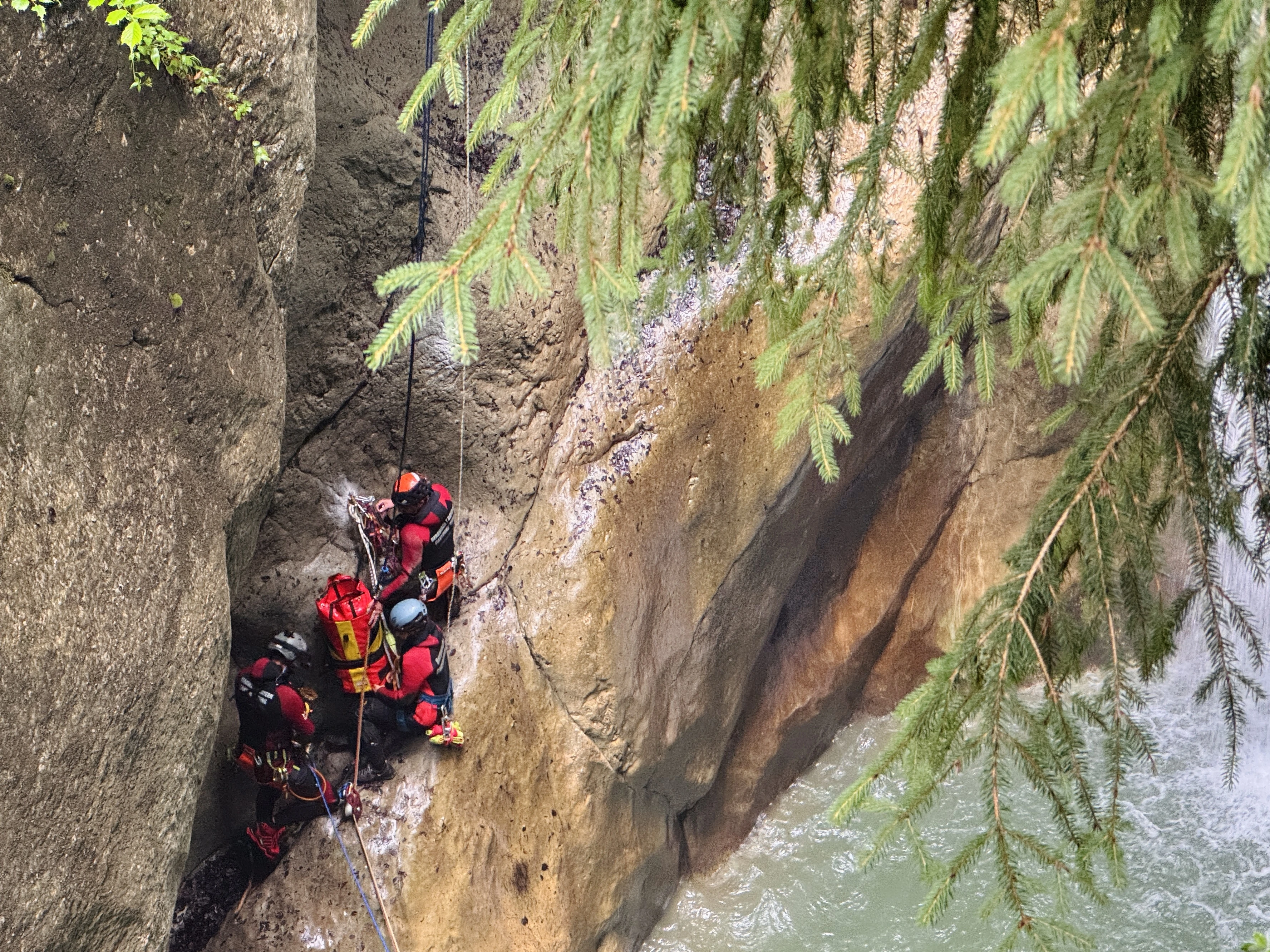 Filmaufnahmen der Canyon-Rettungsübung der Region Hochland Ost und Hochland West