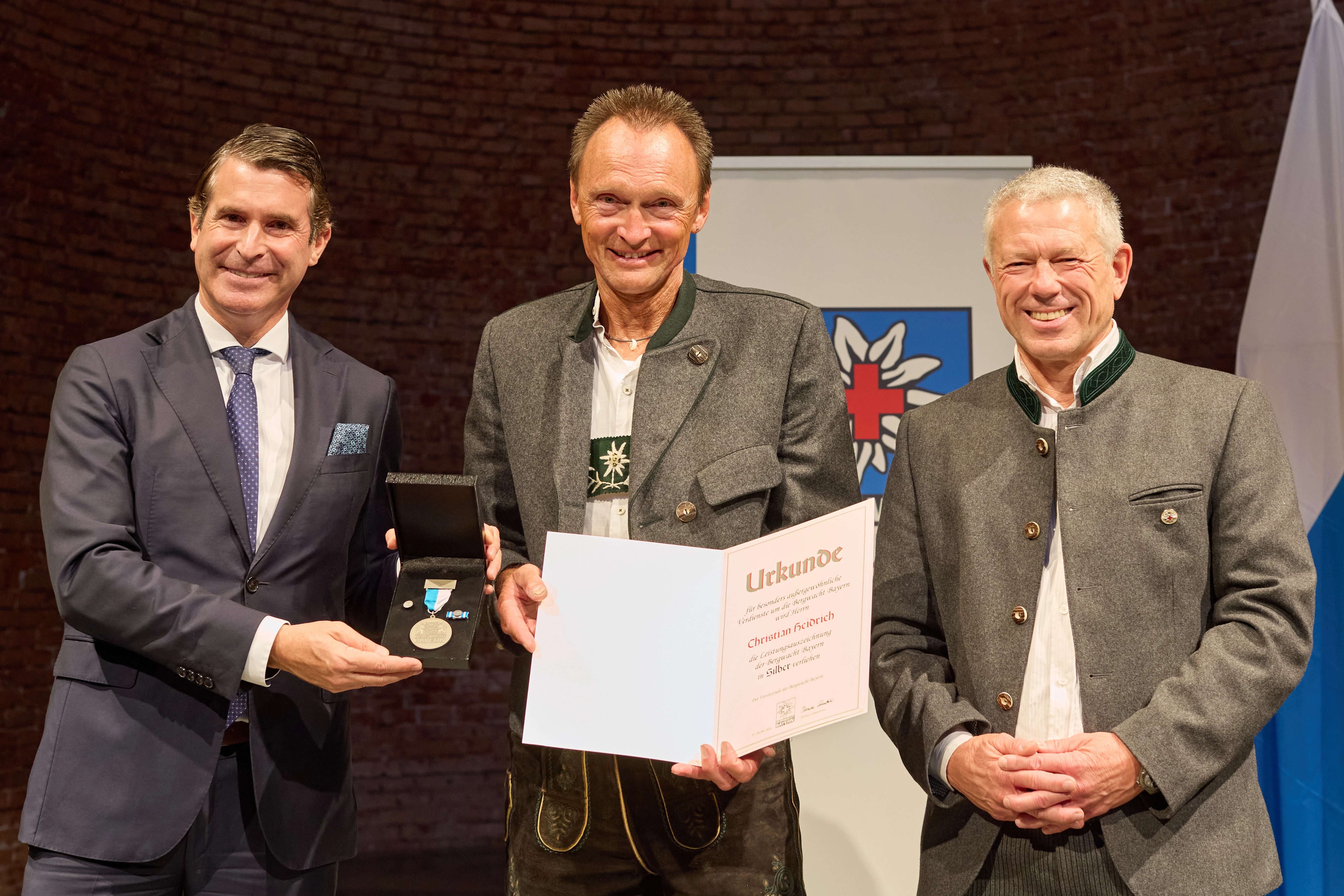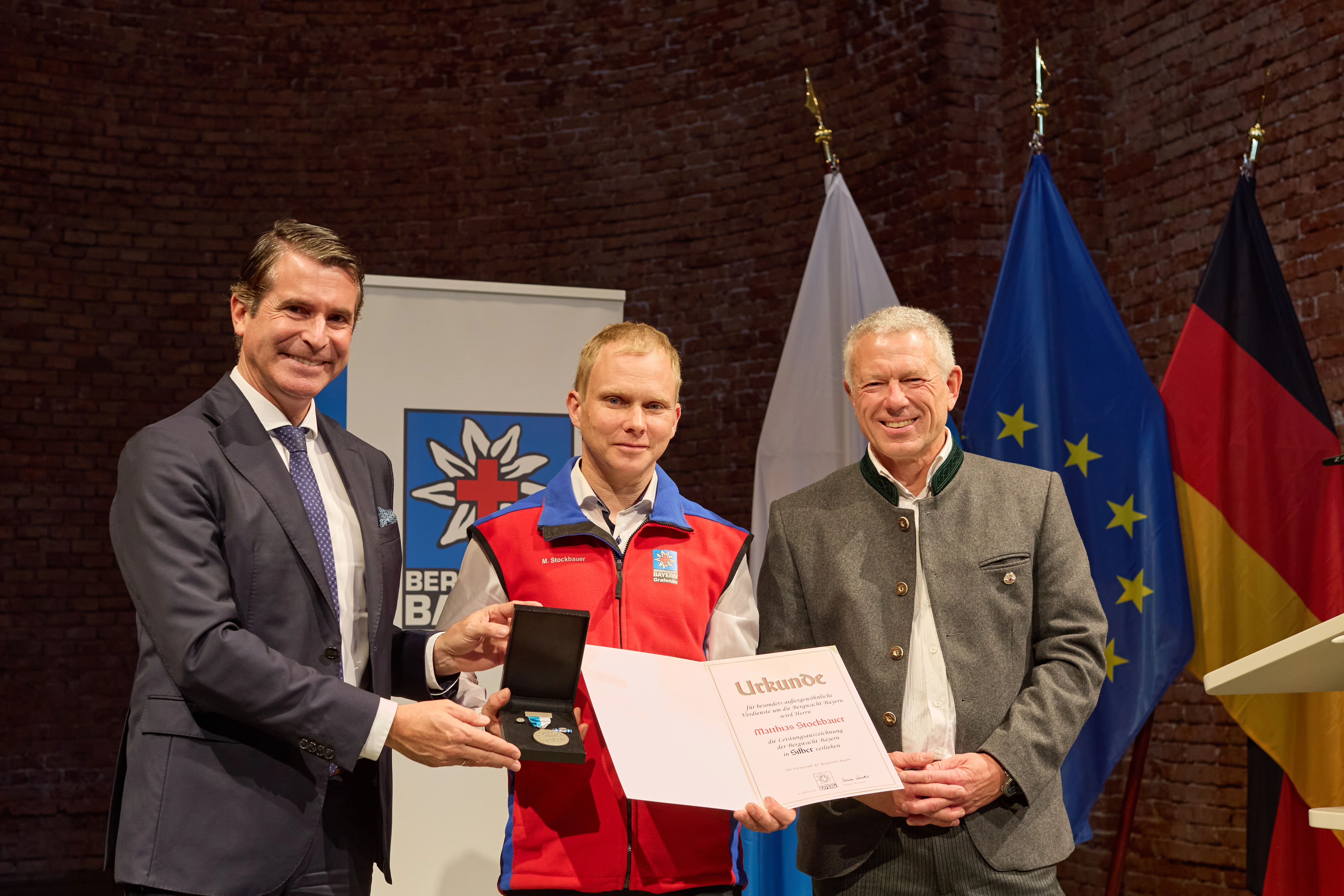 Bei der Leistungsauszeichnung für besondere Verdienste um die Bergwacht Bayern in der Allerheiligen-Hofkirche der Münchner Residenz bezeichnete Bayerns Europaminister Eric Beißwenger die bayerische Bergwacht als ein starkes Stück Bayern: „Sie sind Helden der Berge, die unter schwersten Bedingungen Menschen aus gefährlichen Situationen retten. Sie fragen nicht, sie helfen. Dabei geht es oft um Leben und Tod. Die Berge sind kein Disneyland, sondern raue und oft unberechenbare Natur. Die Bergwacht gehört seit über 100 Jahren fest zu Bayern. Ihre Mitglieder sind große Vorbilder für das Ehrenamt. Für andere da zu sein und Hilfe zu leisten, gehört zur Seele Bayerns. Auch deshalb unterstützt die bayerische Staatsregierung den Ausbau des Bergwacht-Zentrums für Sicherheit und Ausbildung in Bad Tölz mit bis zu 15 Mio. Euro. Die unzähligen Bergretter sind mit Herzblut und großer Verantwortungsbereitschaft bei der Sache. Sie investieren viel Zeit und nehmen Risiken in Kauf. Dafür gebührt Ihnen unser großer Dank und Respekt. Wir wünschen Ihnen für alle Einsätze Gottes Segen!“
