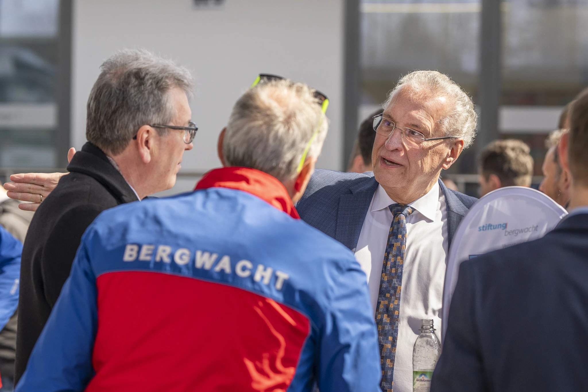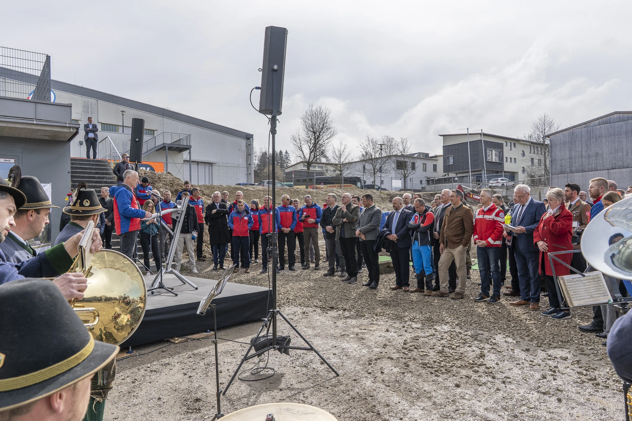 Bad Tölz, 28.03.2025: Rund 180 Gäste durfte der Vorsitzende der Bergwacht Bayern, Thomas Lobensteiner zum Spatenstich für das Bayerische Zentrum für Alpine Sicherheit heute bei Sonnenschein in Bad Tölz begrüßen. Besonders freute er sich über die Anwesenheit einer Vielzahl von Bereitschaftsleitern der örtlichen Bergwachten aus ganz Bayern.